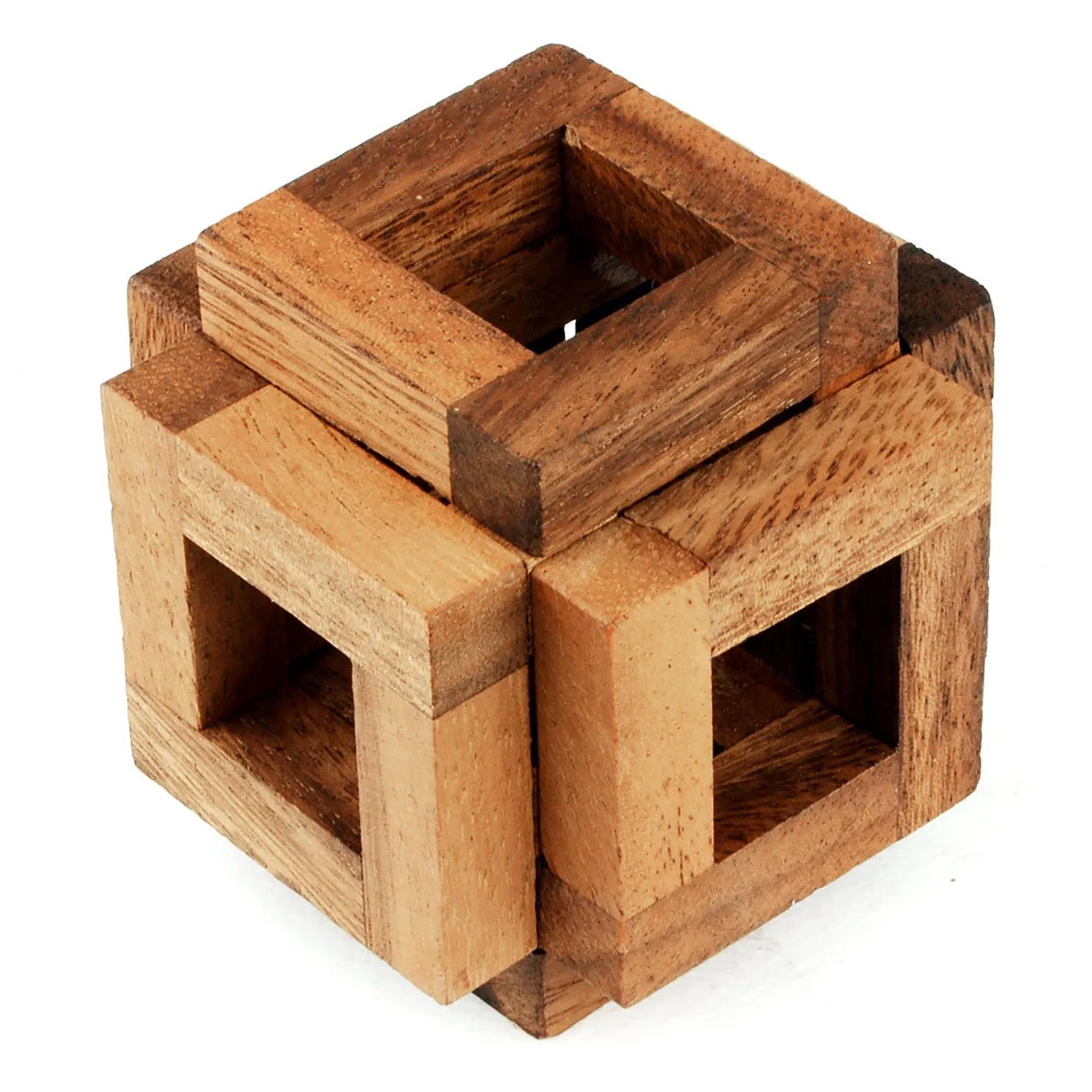 To separate the cube, the user must identify a key element that allows the other pieces to slide free. Rebuilding the shape requires remembering the correct order and orientation, which encourages spatial thinking and patience. The puzzle offers a rewarding mechanical challenge without relying on electronics or complicated rules.